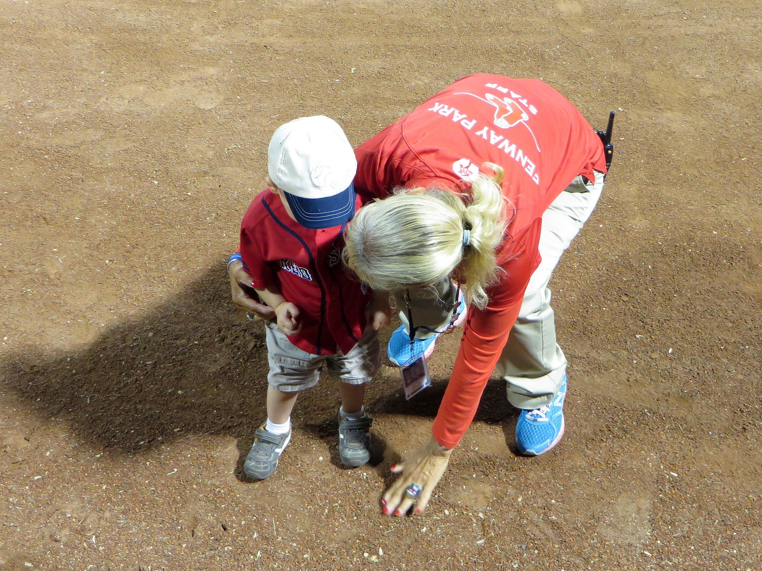 Checking out Fenway dirt.jpg