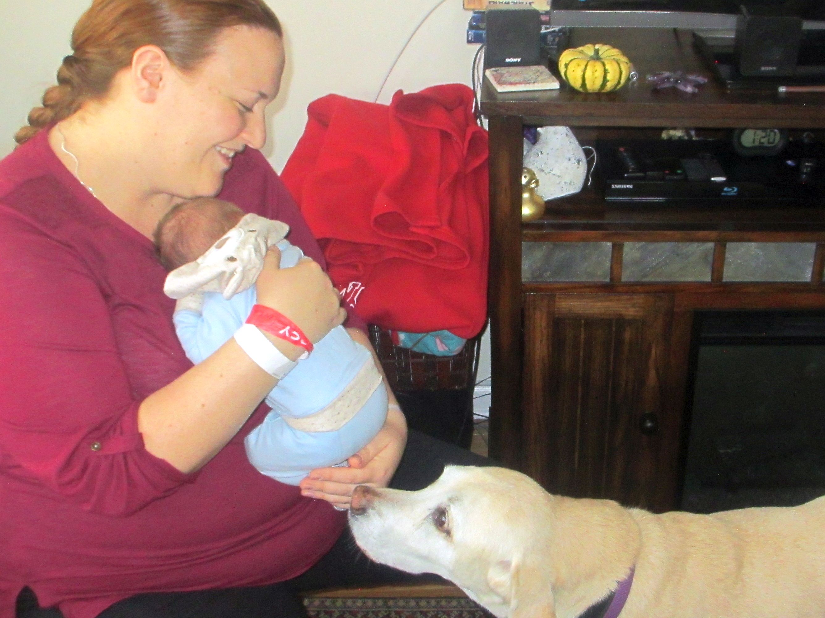 Dusty checking out the little guy