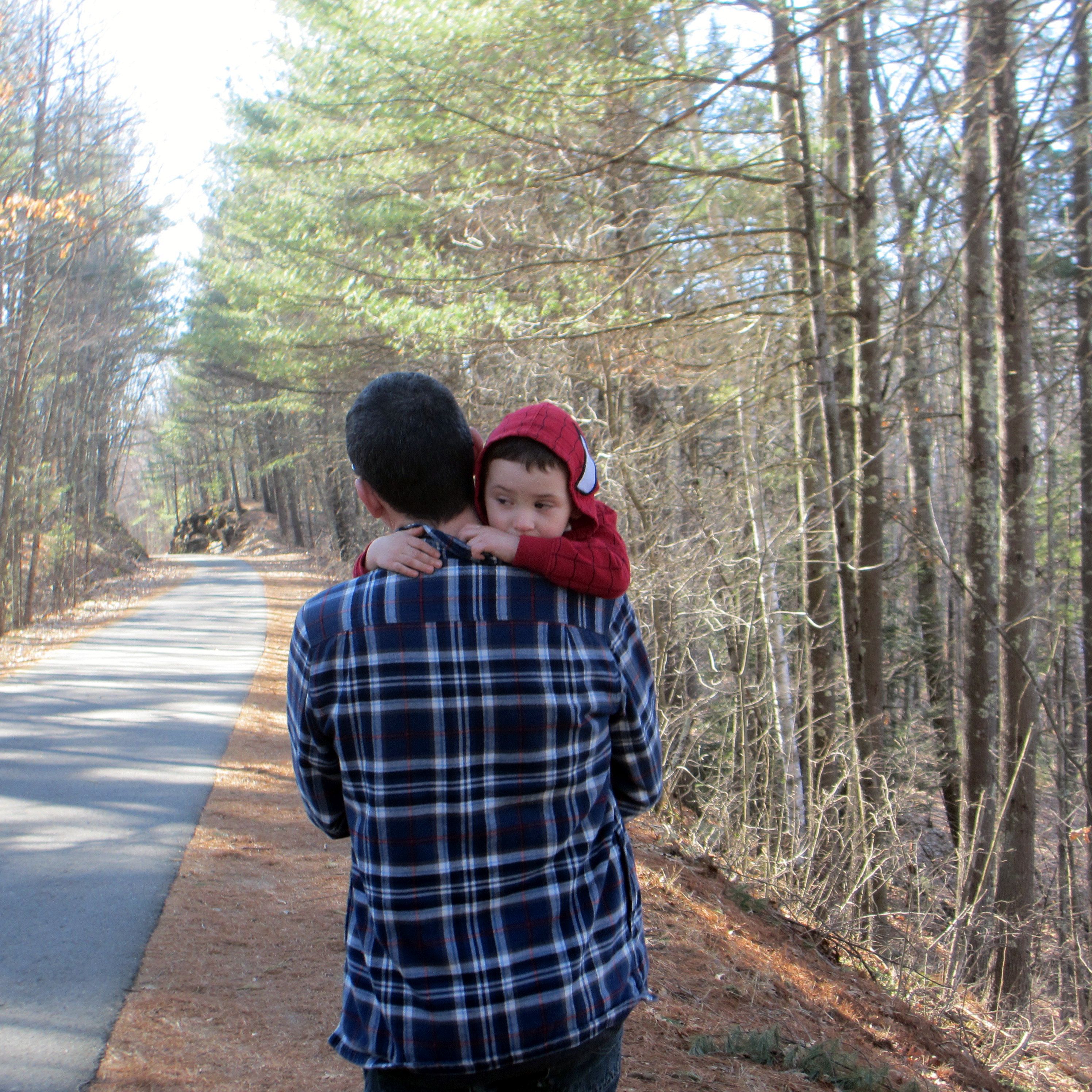 Tired boy heading home