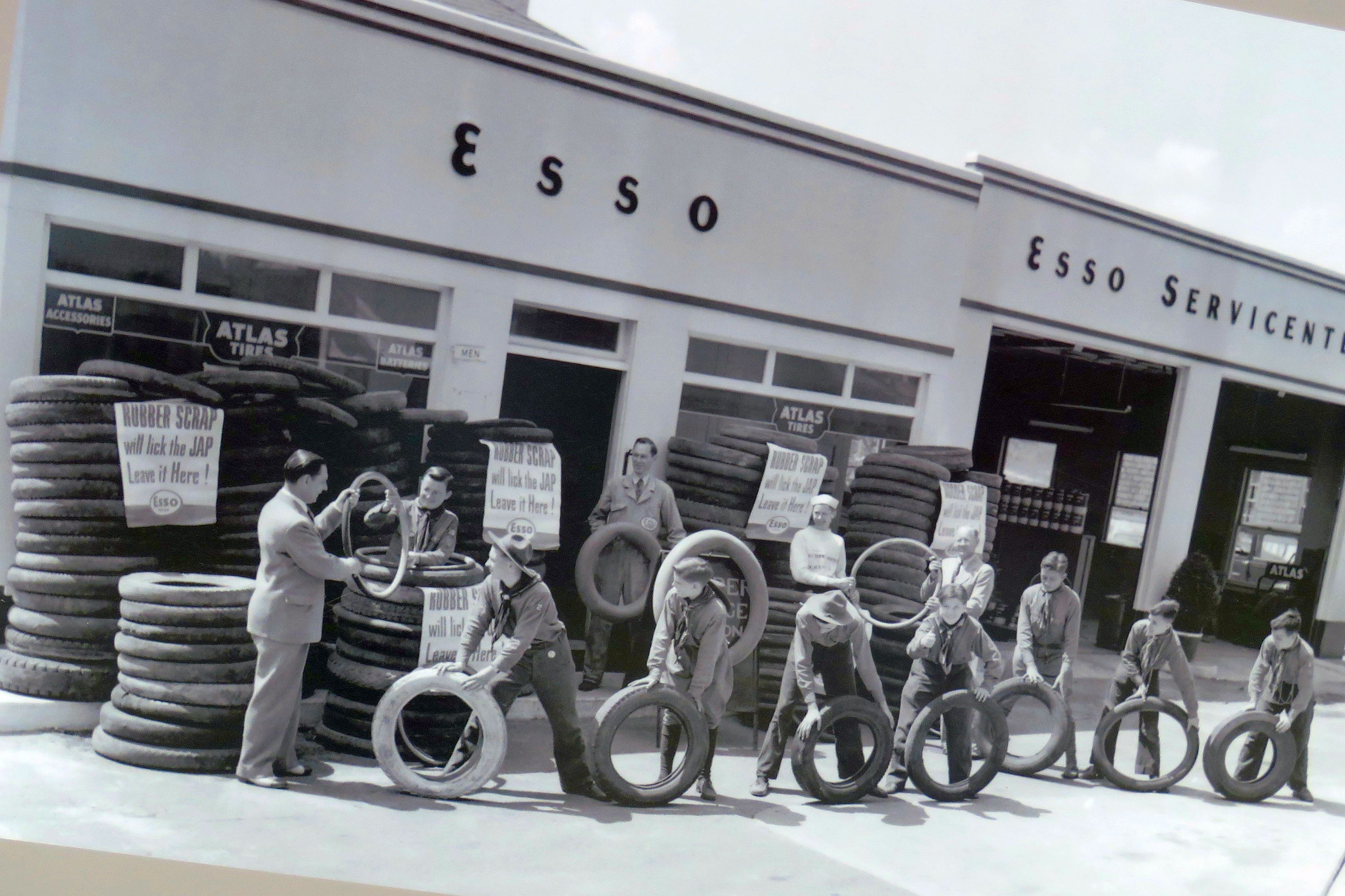 Boy Scouts Collecting Tires During WWII at an Esso Station (Exxon Mobil Today)